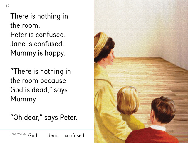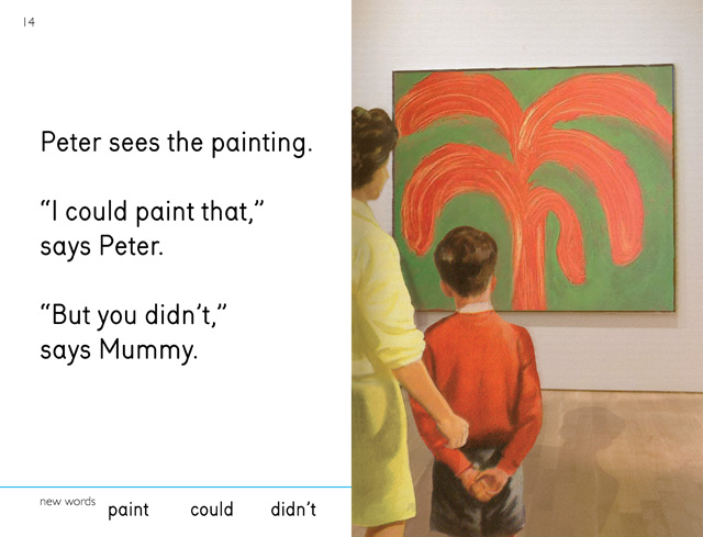 Like the Dick and Jane books in the U.S., England has the Peter and Jane series published by Ladybird, a division of Penguin Publishing. In Elia’s book, Peter and Jane go to look at contemporary art in a gallery with their mother. Funds to publish the book were raised using Kickstarter and she printed 1,000 copies.