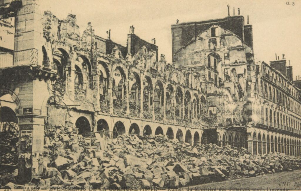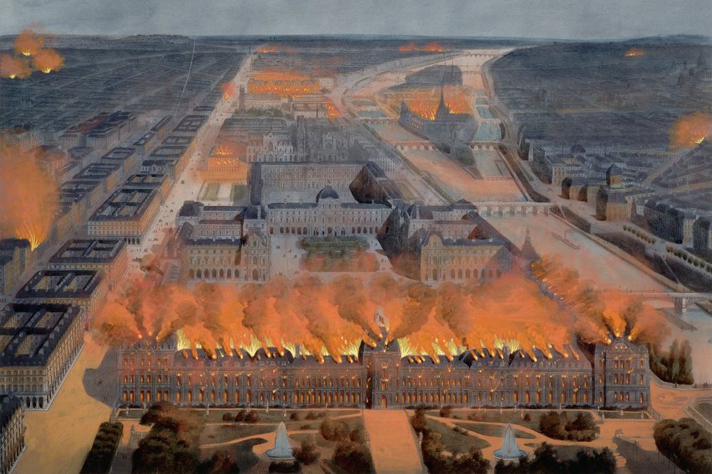 The Louvre, too, ended up in flames. Its priceless art collection survived only by luck, when a heavy rain put out the fires. Sadly, its library and the adjacent Finance Ministry were destroyed.