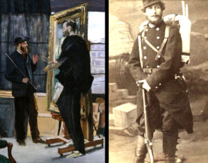 1870 Paris: Manet (left) in Bazille’s studio/Bazille in uniform