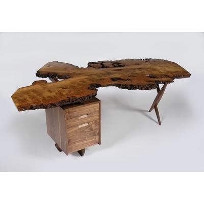 After the end of World War II, Nakashima established his own furniture studio in New Hope and became world-famous as one of the fathers of the American Crafts Movement. Each piece of furniture was finished by hand and custom designed to reflect each commission and the unique quality of the wood. Today, his work is in private collections, like the Rockefeller family’s, and many museums, including the Metropolitan Museum, the Philadelphia Museum, and Morikami Museum. In 1983, he was declared a “sacred treasure” by the Emperor of Japan.